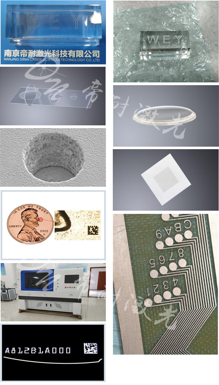 主要應用于超精細微加工,如超薄液晶玻璃、各種高檔酒瓶等材料表面及內部打標。